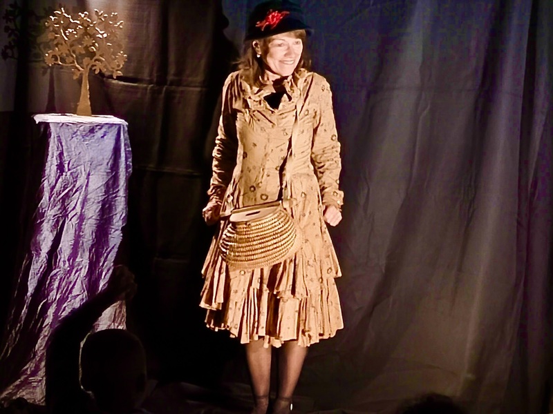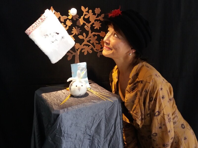 La conteuse tire de la musette que lui a donnée son père des objets qui déclenchent des histoires.